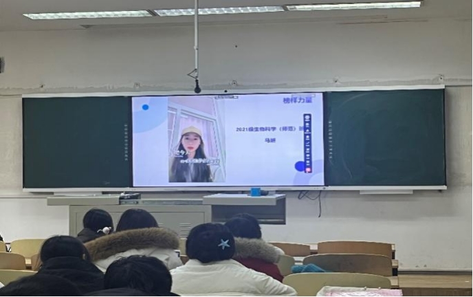 班会上,李晨介绍了本次班会的主题与流程。同学们共同观看了2021级生物科学师范班马妍同学录制的视频,她结合自身备考经历,详细分享了参加“三支一扶”项目的流程、备考方法与心路历程,为有志于基层服务的同学提供了宝贵参考。