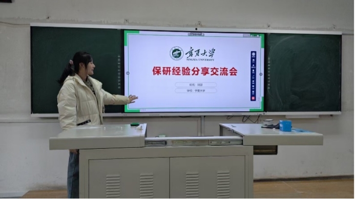 在互动交流环节中,徐金瑞详细介绍了学院研究生专业设置与核心研究方向,对学校保研政策进行了全面解读,助力同学们清晰规划深造路径。对同学们课程学习、科研训练、就业去向等方面提出的问题逐一耐心解答,并指出大家要树立明确的目标,知不足而奋进,脚踏实地,既要深耕专业、筑牢学识根基,也要主动投身科研与社会实践,为未来升学、就业等多元发展路径积蓄充裕动能。