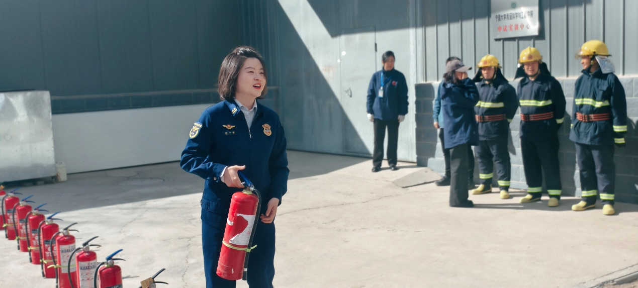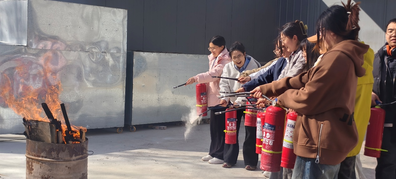 培训结束后,全体人员来到演练场,开展灭火器实操“大练兵”。高一博参谋首先讲解了干粉灭火器的原理与检查要点,随后亲自示范了“提、拔、瞄、压”四步操作法,并逐一分解动作要领,强调站位与心态的重要性。在“实战”环节,同学们跃跃欲试,在高参谋与安保人员的指导下,分批次对准模拟火源进行扑救。从初次尝试的紧张到成功灭火后的从容,同学们在实践中真正掌握了这一关键消防技能,有效提升了面对真实火情时的心理素质与处置信心。