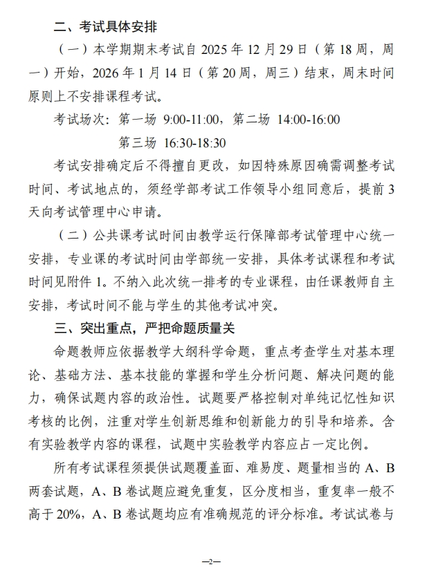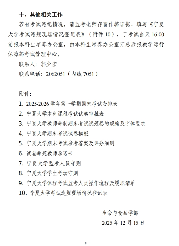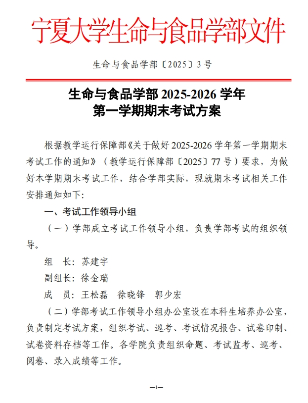 生命与食品学部 2025-2026 学年 第一学期期末考试方案